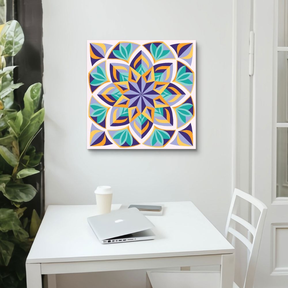 As formas se organizam em ritmo e movimento, criando um diálogo entre equilíbrio e vitalidade. As cores evocam a sensação de renovação, como se cada traço fosse um sopro de vida devolvendo energia ao ato de criar. A mandala, assim, se torna um símbolo desse reencontro, lembrando que a arte é sempre um caminho de retorno ao essencial.