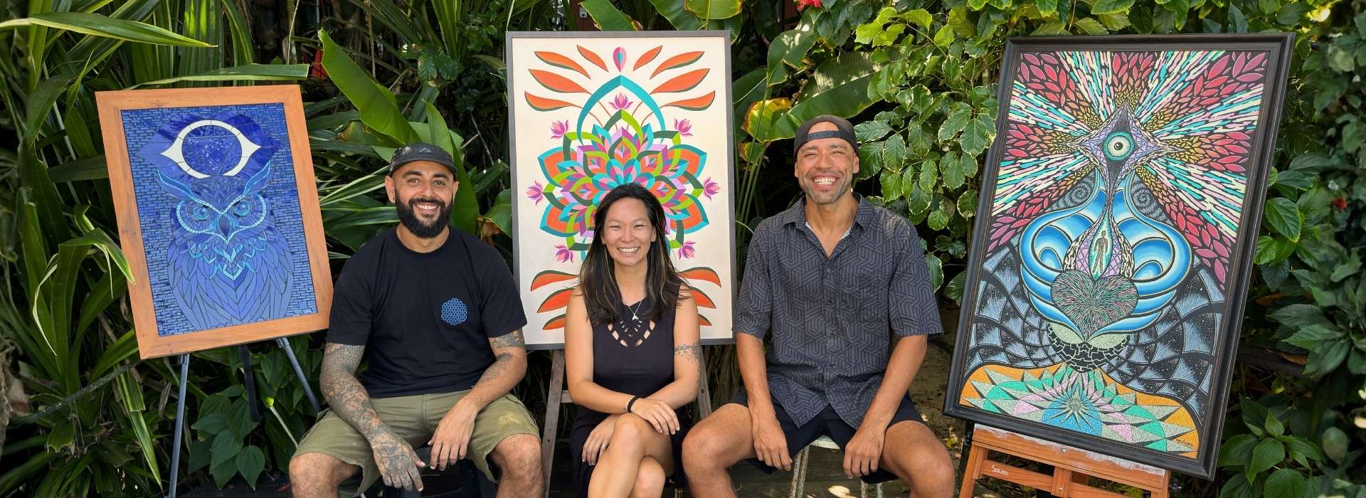 Somos a união de três caminhos artísticos que se tornaram um só propósito: a Sagrada Decoração. Nosso trabalho nasce do encontro entre a ciência e o espírito, onde as mandalas da Jessica, as pinturas visionárias do Marcello e os mosaicos do Ban se fundem para criar atmosferas que vibram harmonia. Mais do que objetos, entregamos ferramentas vivas de acesso ao subconsciente, pensadas para que o seu entorno deixe de ser um cenário passivo e passe a ser um lugar de inspiração.